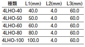 | 種類 | L1mm | L2mm | L3mm |
