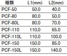 | 種類 | L1mm | L2mm |